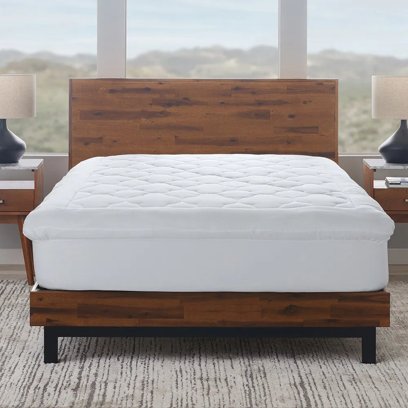 Englander Memory Foam Mattress Topper is placed on top of the base mattress to add a layer of support and softness while you sleep, it takes the shape of the body's curves and helps relieve pressure on the spine.